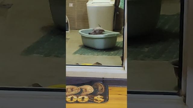 Снежок принимает ванну