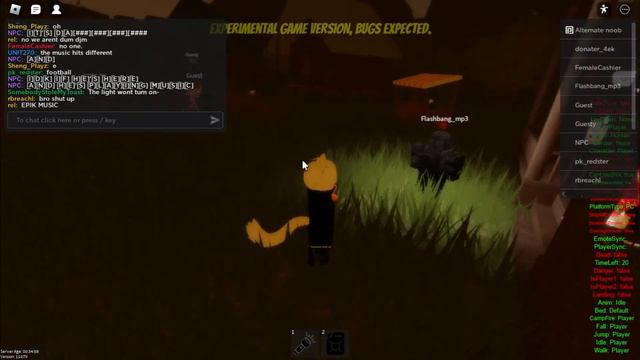 Playing Camp Out Until Dawn Experimental, messing around a bit idk. Video quality not the best, but atleast you can read chat. Game: https://www.roblox.com/games/12664061833/Camp-Out-Until-Dawn-Experimental (It's an experimental version of this game https://www.roblox.com/games/9547009937/Camp-Out-Until-Dawn, so expect it to be buggy.)