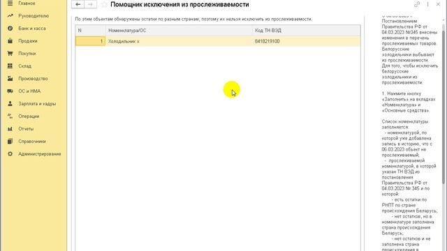 В «1С:Бухгалтерии 8» начиная с версии 3.0.133 для прослеживаемых товаров и основных средств можно вести историю прослеживаемости. Это позволяет исключить из перечня прослеживаемых товаров с 06.03.2023 холодильники и морозильники, произведенные в Белоруссии, и импортированные в РФ с территории РБ, по Постановлению Правительства РФ от 04.03.2023 № 345. Начиная с версии 3.0.135.22 в «1С:Бухгалтерии 8» доступен помощник исключения товаров из системы прослеживаемости. Помощник не только исключит указанные товары из перечня прослеживаемых, но и позволит списать РНПТ по остаткам. Как это сделать – смотрите в видеоуроке экспертов 1С. Видеоролик выполнен в программе «1С:Бухгалтерия 8» версии 3.0.135.22. Подробнее с этим вопросом можно ознакомиться на сайте БУХ.1С https://buh.ru/articles/faq/167700/