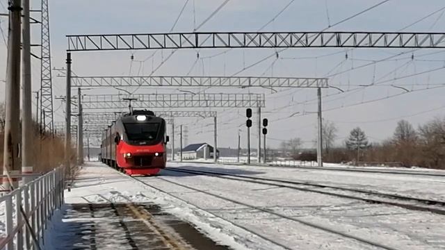 Электропоезд ЭП2Д-0202 с пригородным поездом №6016 Миасс-1 — Челябинск-Главный в 4-х вагонной составности прибывает на 1-й путь Ст. Смолино, г. Челябинск, Челябинская обл., ЮУЖД Дата: 03.03.2023
