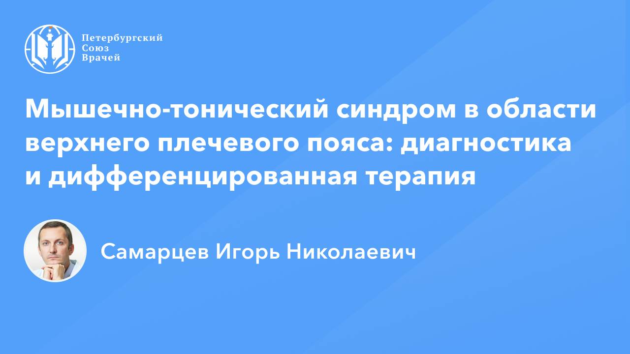 Мышечно-тонический синдром в области верхнего плечевого пояса: диагностика и дифференцированная терапия Дата проведения: 30.01.2025, 20:00 Страница мероприятия: https://spb.doctor/i/250130/ Программа: 1. Мышечно-тонический синдром в области верхнего плечевого пояса: диагностика и дифференцированная терапия Самарцев Игорь Николаевич 2. Стратификация клинической картины как основа рационального лечения боли в области верхнего плечевого пояса Самарцев Игорь Николаевич 3. Современная концепция профилактики нежелательных явлений противоболевой терапии Самарцев Игорь Николаевич 4. Ответы на вопросы О семинаре: Исходя из области поражения, выделяют локальный мышечно-тонический синдром, затрагивающий одну мышцу, и генерализованную форму патологии, когда повреждается одновременно несколько мышц. Мышечно-тонический синдром может иметь как генетическую природу, так и приобретенную форму заболевания. Лечение направлено на устранение причин и включает медикаментозную, мануальную терапию, нейрохирургию, ЛФК, физиотерапию.