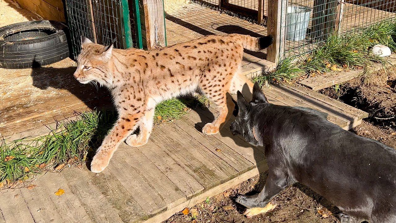 ШОК! РЫСЬ Симба ВПЕРВЫЕ ВЫХОДИТ ИЗ ВОЛЬЕРА / Барханные кошки устроили сюрприз