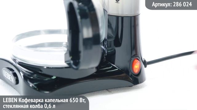 Видеообзор техники LEBEN: Кофеварка капельная 650Вт, стеклянная колба