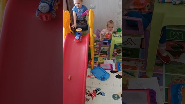 Паровозик из Ромашково! Алиса играет с паровозиком.