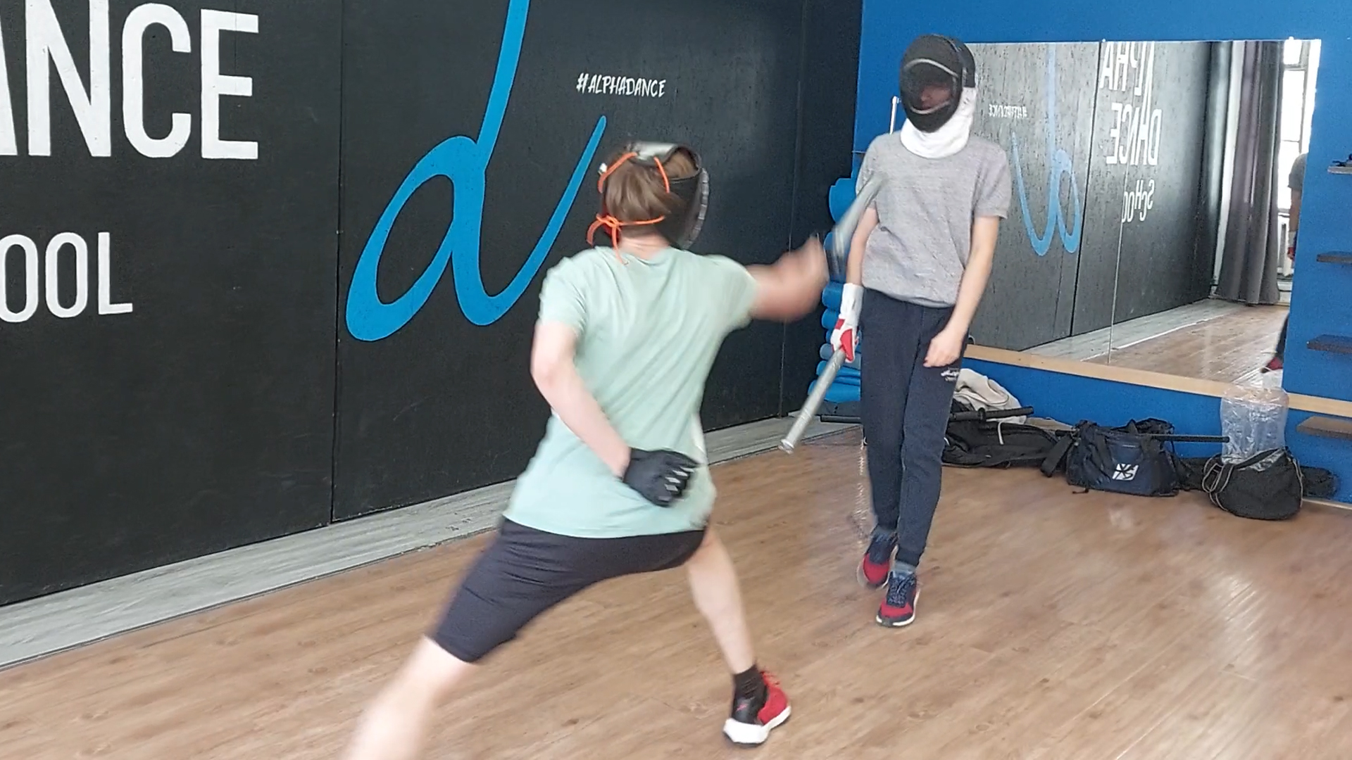 Кендзюцу - японское фехтование: спарринг на коротких мечах на тренировке Katana Club