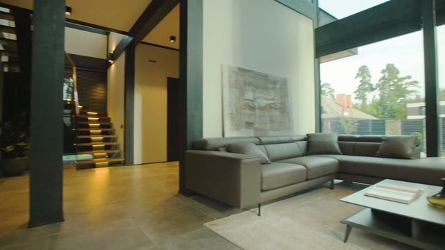 Проект дома "Лихтенштейн" представляет собой идеальное сочетание минимализма и природной изысканности, находясь в окружении вековых сосен заповедной зоны Подмосковья. Этот уникальный дом спроектирован для тех, кто ищет альтернативу городской квартире, но не готов отказаться от всех благ цивилизации. Интерьер дома продуман до мелочей. Просторное двухсветное пространство гостиной поражает своей высотой, а камин от пола до потолка, высотой 8 метров, облицованный керамогранитом темно-серого цвета, добавляет уюта и тепла в общую атмосферу. Панорамные окна от пола до потолка пропускают много естественного света и создают ощущение единства с природой. Парящая лестница с подсветкой и множество световых спотов выделяют массивные балки и натуральные материалы, придавая интерьеру особую атмосферу.