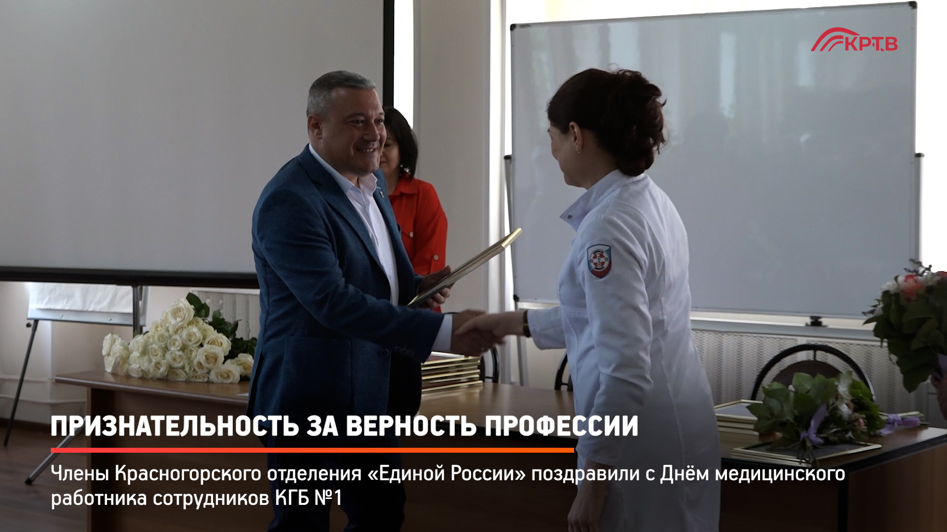 Члены местного отделения партии «Единая Россия» поздравили медиков Красногорска с профессиональным праздником. Благодарственными письмами ко Дню медицинского работника отмечены сотрудники КГБ №1, КГБ №2, скорой помощи, КВД и стоматологической поликлиники им. Смуровой.
