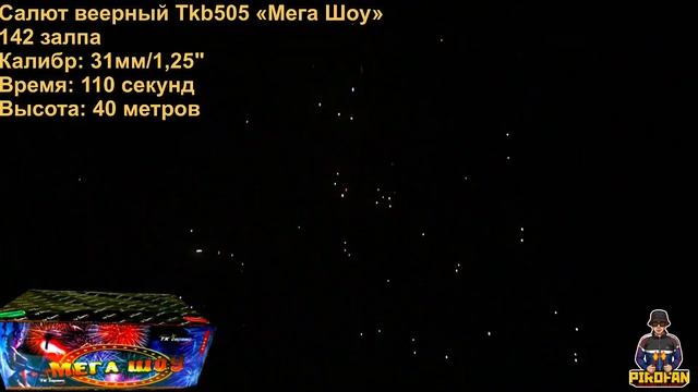 HTTPS://VK.COM/PIROFAN - Успей купить со скидкой! TKB505 Салют шикарный на свадьбу 142 СуперБольших залпа, фейерверк Мега Шоу (веерный) - Калибр: 30мм = 1,25" дюйма - Время действия: 85 секунд - Высота выстрела: 35 метров - Есть сертификат и гарантия от ПироФан