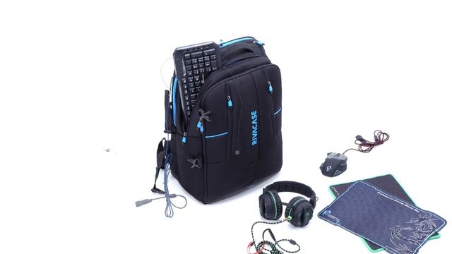 Product Features: • Multifunctional backpack is specially designed for professional gamers but ideal for business trips and travelling as well • High-quality water-resistant fabric with shock absorpbing EVA padding • Main Laptop compartment with padded walls and bottom, additional inner compartment for a Tablet up to 10" • Capacious zippered section for all the necessary gaming accessories (headset, mouse pad, full-size keyboard and other stuff) • Plug your portable rechargeable battery into a USB port on the side of the backpack to charge your devices while on the go • Front zippered pocket for accessories, powerbanks, business cards, pens, documents and a smartphone • Comfortable soft handle, shoulder straps with softened bands and a sternum strap will make you feel comfortable even during the longest journey • Full contact, super ergonomic design provides pleasant ventilation and keeps your back dry at all times • Trolley strap easily attaches the backpack to any rolling luggage • Side pocket for a water bottle with an additional zippered compartment for carrying small stuff • Hidden pocket on the back for a passport or wallet • Rain cover #RIVACASE_7860 #RIVACASE #Gaming_backpack