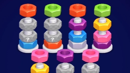 Сортируйте цветные гайки и болты. Интересные головоломки. Сортировать цвета!