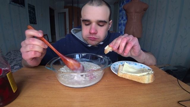 МУКБАНГ/АСМР ОВСЯНАЯ КАША//ГЕРКУЛЕС//ОВСЯНКА/БУТЕРБРОДЫ-ХЛЕБ,МАСЛО/ВАРЕНЬЕ/ EATING/ASMR/Mukbang#336