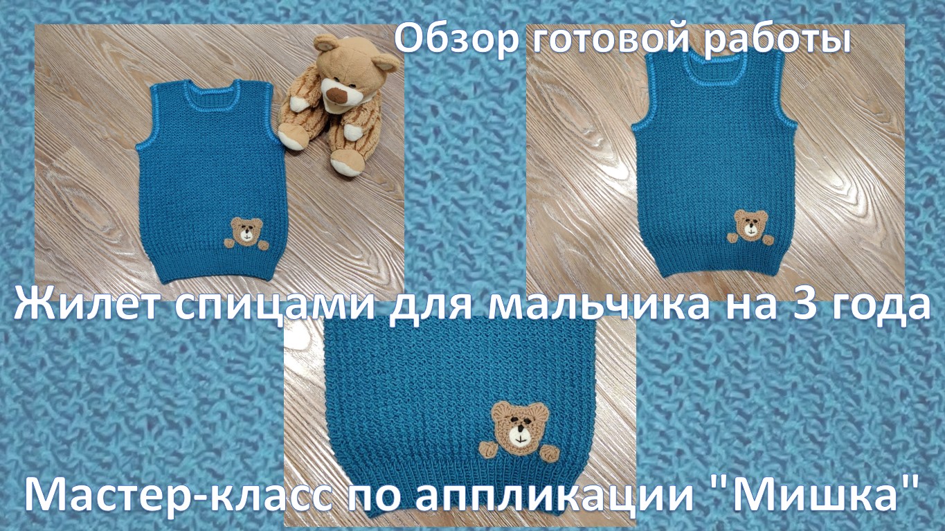 Жилет спицами для мальчика на 3 года. Обзор готовой работы. Мастер-класс по аппликации "Мишка".