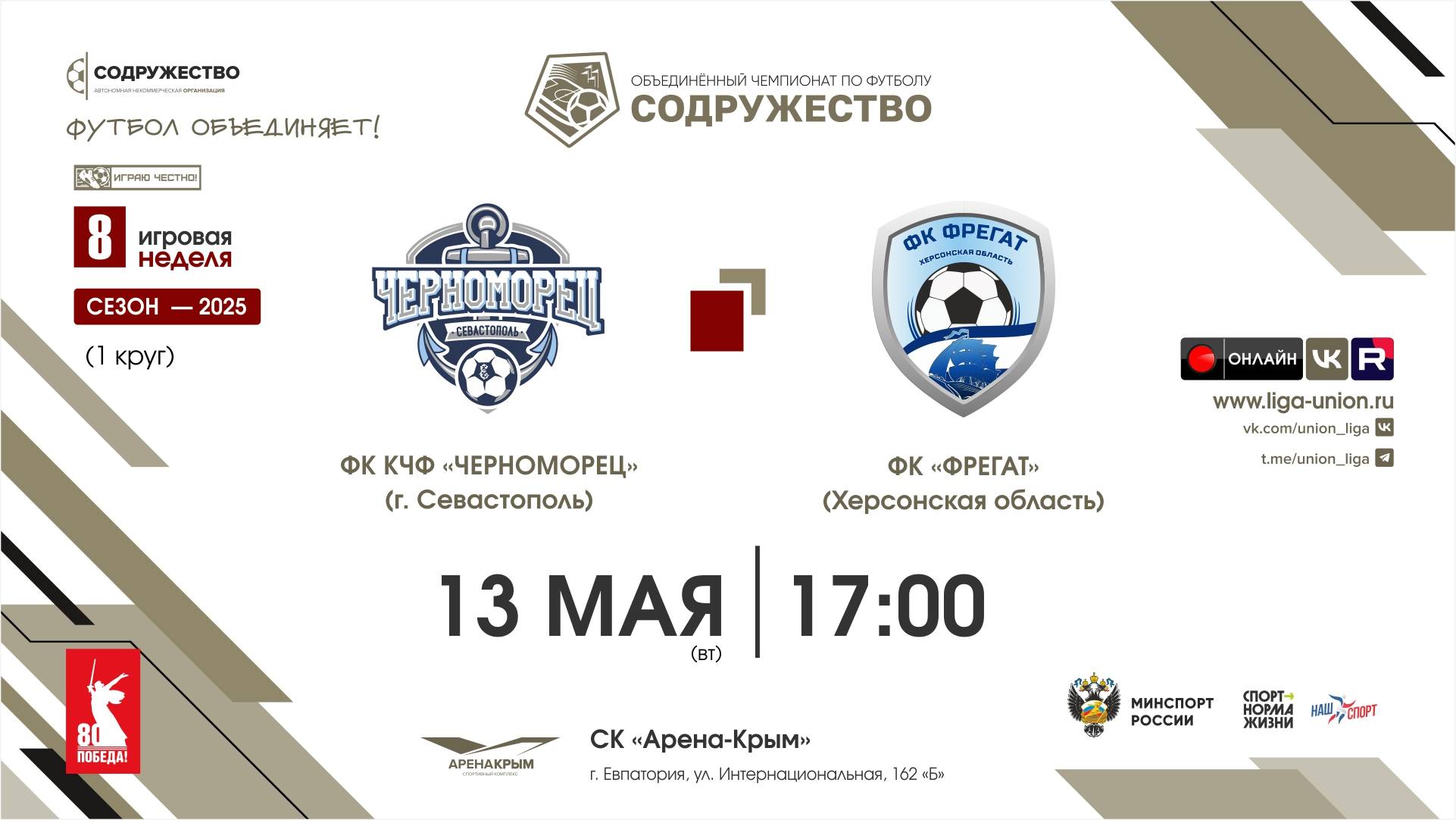 8 неделя (2025) | ФК КЧФ «Черноморец» (Севастополь) - ФК «Фрегат» (Херсонская область) | 13.05.2025