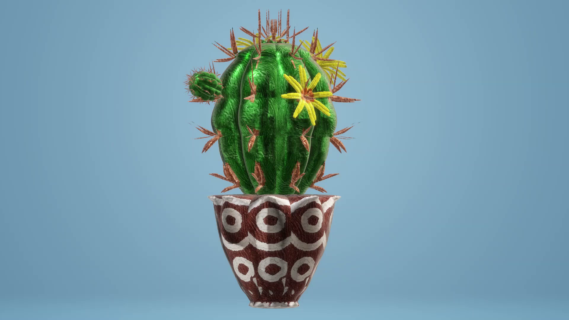 Кактус в цветочном горшке. Рисунок 3D