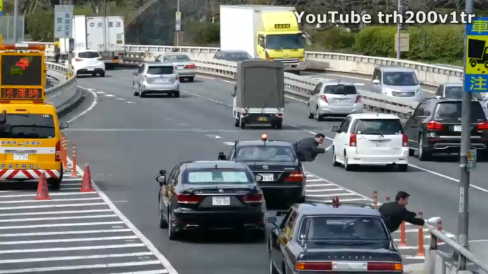 Кортеж японского премьер-министра и дорожный трафик