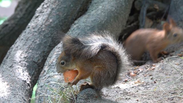 Бельчонок ест морковку