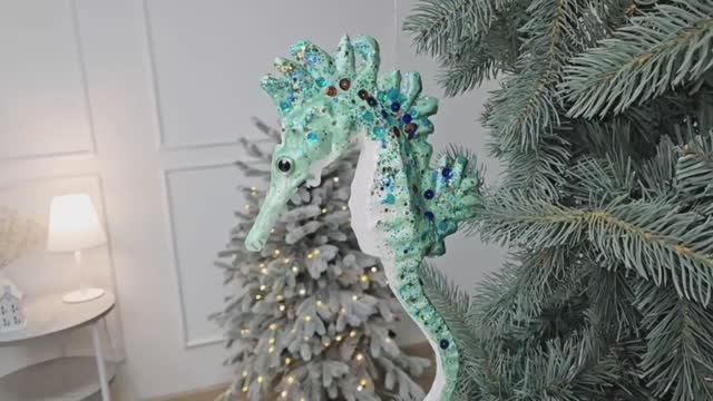 https://www.morozko-shop.ru/ Ёлочная игрушка ГОЛУБОЙ МОРСКОЙ КОНЁК, серия МИРОВОЙ ОКЕАН, пенополистирол, 28 см, 1151761