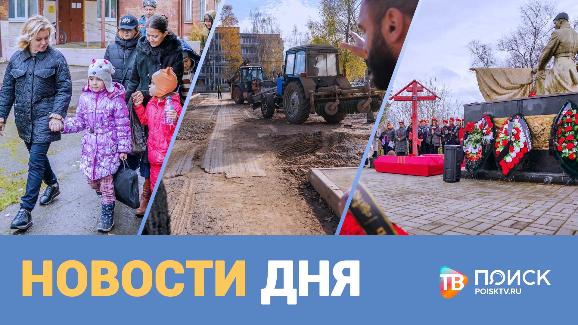В спокойствии и комфорте. В подмосковные пункты временного размещения прибыли жители из Белгородской области. Им предоставили все условия для временного проживания. В Клин приехали 68 человек. Среди них более сорока детей. Капремонт для городков. В округе прошло расширенное заседании комитета Московской областной Думы по строительной политике, энергетике и жилищно-коммунальному хозяйству. Совещание начали с осмотра военного городка Клин-9. Слава героям. Поисковики Клинской районной общественной организации "Подвиг" перезахоронили в братскую могилу села Борщева 9 солдат 365-ой стрелковой дивизии, поднятых в августе во время "Вахты Памяти" В шаговой доступности. Теперь жители города и приезжие пациенты смогут пройти КТ-обследования на новом цифровом аппарате ведущего мирового производителя Дженерал Электрик. Об этом и не только в программе "Новости дня".