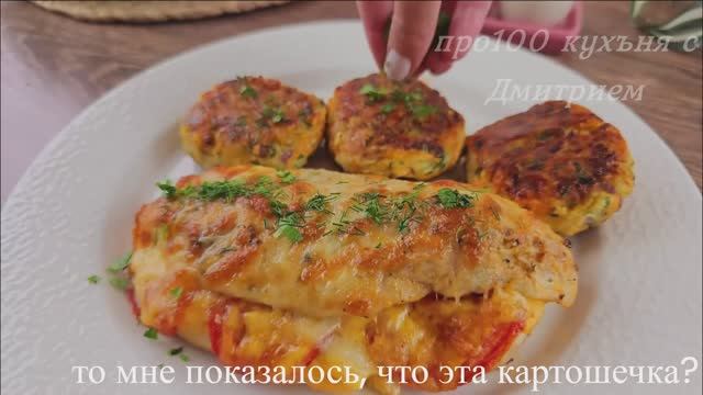 Добро пожаловать на наш канал! Нарежьте 2 куриные грудки, как показано на видео. Добавьте соль, паприку и черный перец. Нарежьте 1-2 помидора. Как вы поживаете, друзья? Нарежьте 4-5 кусочков сыра. 30 грамм сливочного масла. Смажьте противень растительным маслом. Сделайте надрезы, как показано на видео. Смешать соль, черный перец, паприку, итальянские травы и 4 столовые ложки растительного масла. Смазать куриные грудки. Выпекать при 200°C (400°F) 25 минут. Натереть 1 средний кабачок. Из кабачков выжать сок, посолить и оставить на 5-7 минут. Нарежьте 1 фиолетовую луковицу. Нарежьте пучок петрушки. Натереть 2 картофелины. Выдавить сок из картофеля и кабачков. Натереть 1 морковь. Натереть 70 г сыра. 2 яйца, соль, черный перец. 4-6 столовых ложек панировочных сухарей. Создайте фигуры, как показано на видео. Обжарить на растительном масле на медленном огне по 7-8 минут с обеих сторон. Натереть 50 грамм сыра. Посыпать сыром и запекать еще 5-7 минут при 200°С. Измельчите петрушку и укроп. Приятного аппетита!
