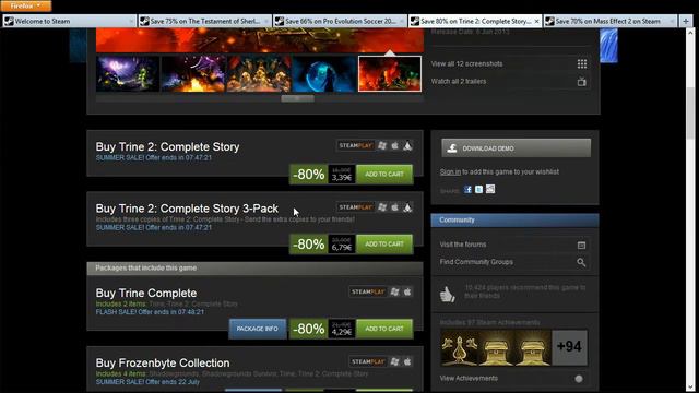 the latest flash sale and community's choice on steam 00:43 - Testament of Sherlock Holmes 01:22 - Pro Evolution Soccer 2013 01:53 - Trine 2 02:46 - Mass Effect 2 03:53 - Left 4 Dead 2