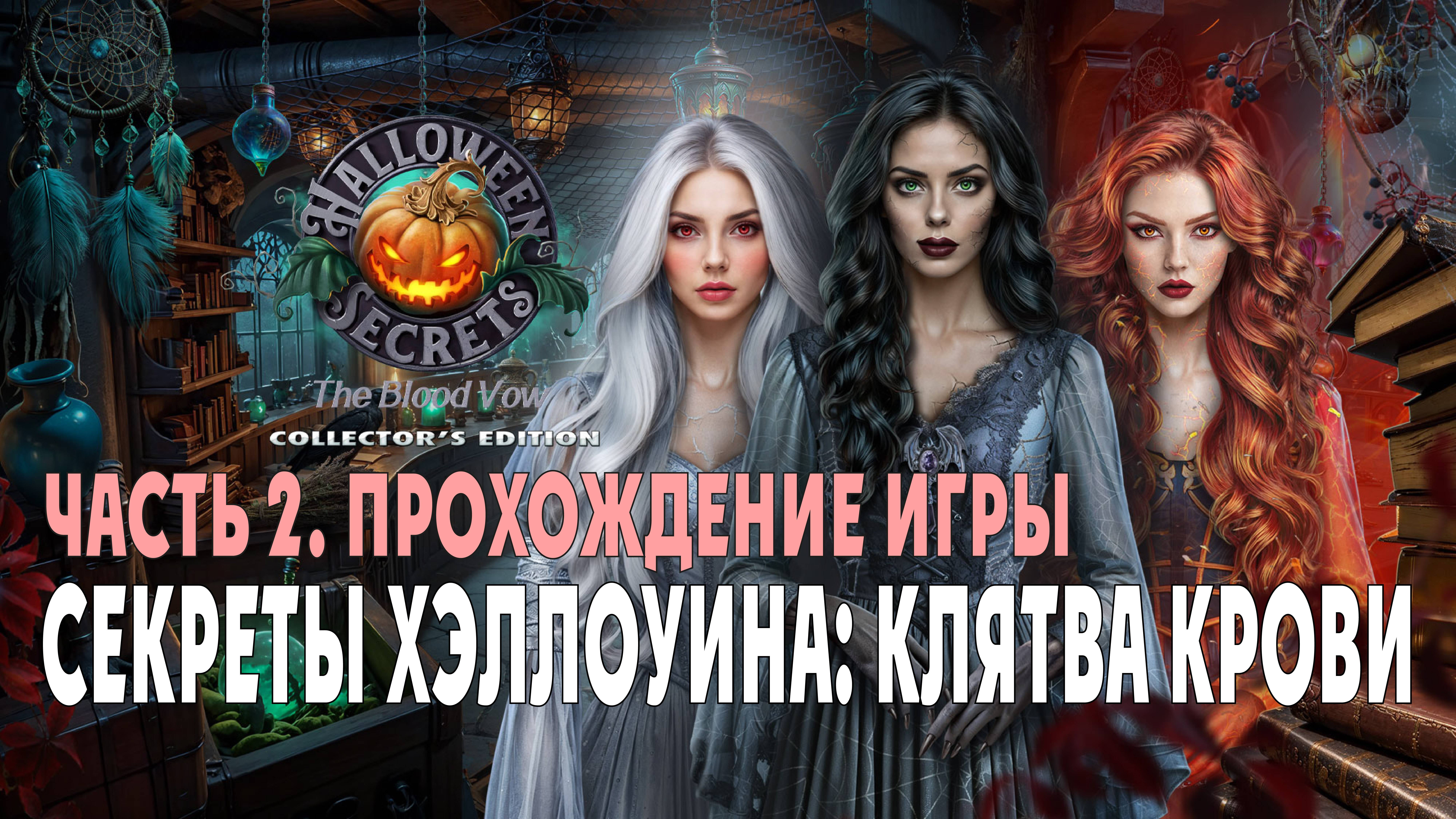 Полное пошаговое прохождение игры Halloween Secrets - The Blood Vow («Секреты Хэллоуина: клятва крови»). Часть 2: в школе вместо учеников блуждают тени Морганы. Но это не останавливает Алекса и Кейт в попытке узнать тайну ведьм замка Даркхэнд, захвативших Дэна. Оказывается, три сестры - Амалия, Морриган и Лисбет - родились в семье алхимиков. С юных лет у них были необычные способности. Они лечили людей и скот, но люди все равно прозвали их ведьмами и погубили. Но взошедшая кровавая Луна и ритуал, который провели подростки, вернули всех троих к жизни. Ведьмы привязаны к спрятанным в городе артефактам. Алексу и Кейт удается найти эти предметы и собрать оружие, но Дэна еще предстоит спасти...