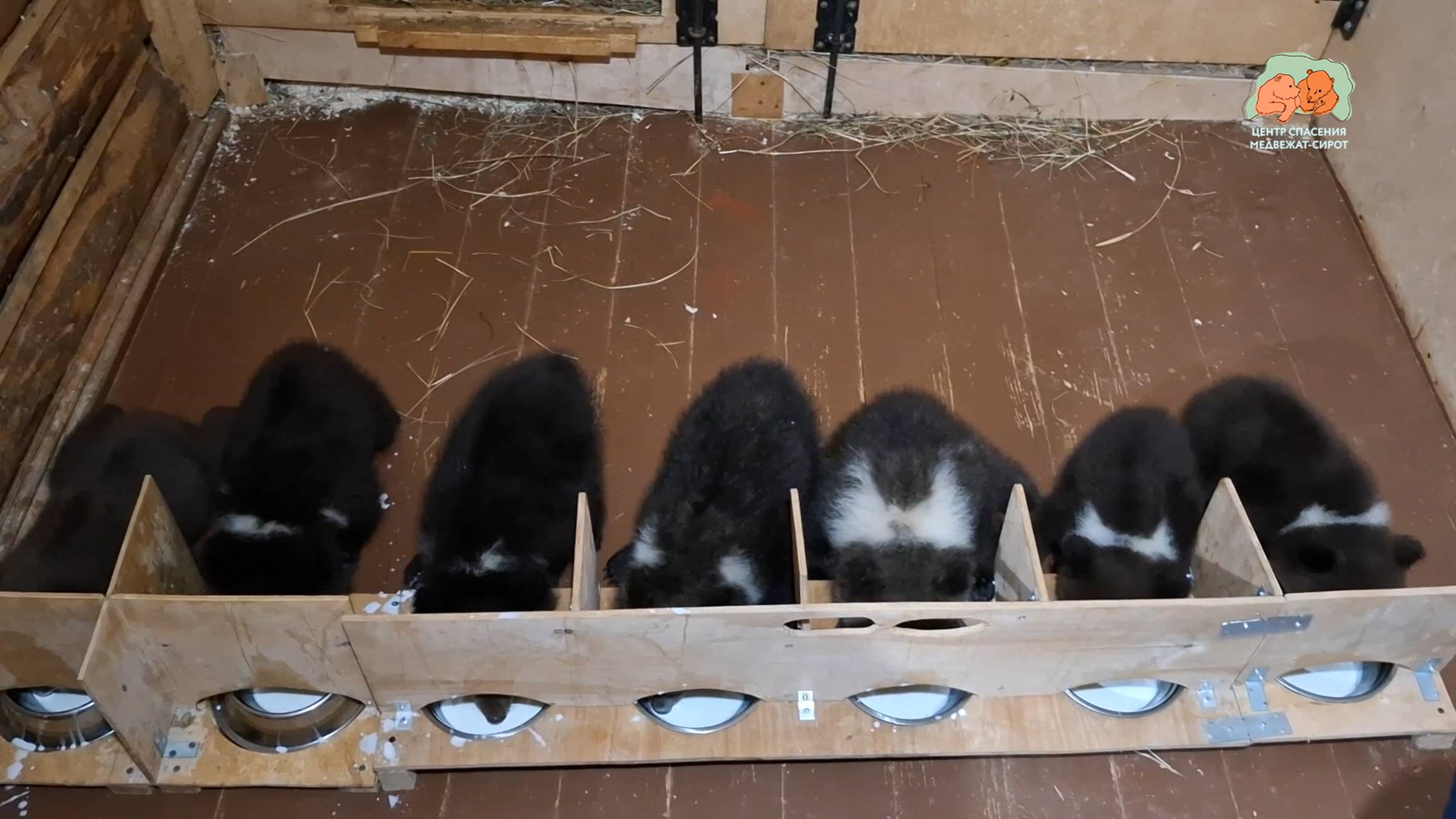 Ну что же, знакомство медвежьего народа состоялось, значит и на трапезу 🍽🍽🍽 теперь вместе одной гурьбой! Первое время мы эту «гурьбу» немного распределяли – «7 + 2», так удобнее маневрировать/контролировать/регулировать, да кашу подливать. Сейчас трапезы проходят уже несколько в ином формате, но это мы вам покажем в наших следующих медвежьих новостях. Некоторое несовершенство видеосъемки вполне объяснимо – одной рукой мы держим камеру, а другой – подливаем кашу, так как даже мимолетный простОй в поставках каши может привести к серьезным и очень громким волнениям среди медвежьего народа 🙈😅😅😅 Центр спасения медвежат-сирот: orphan-bear.org