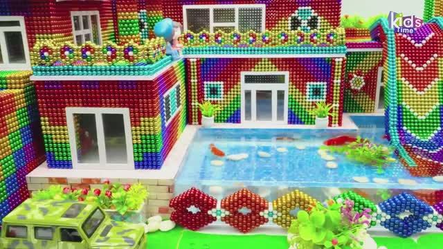 Конструктор - Магнитные шарики - ASMR - Вилла, водная горка с крыши в бассейн - Magnet Balls