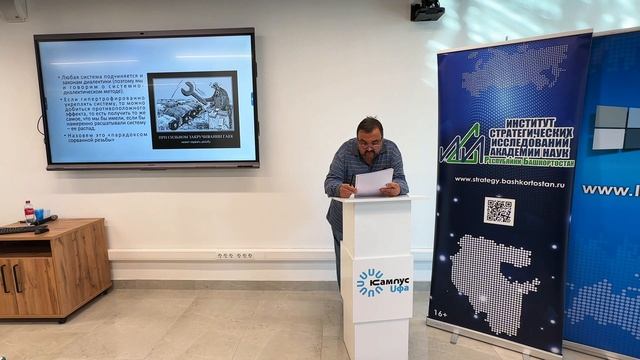 Вахитов Рустем Ринатович, доцент Уфимского университета науки и технологий, к. филос. н. Тема доклада: «Анализ устойчивости этнополитической системы Рб при помощи системно-диалектического метода»