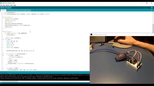 Модуль отображения информации на 4 семисегментных индикатора и символ двоеточия на микросхеме TM1637. Даташит на TM1637: https://drive.google.com/file/d/0B7YhCK2ZNsYYcFo5Vi1XR085eFU/view?usp=sharing&resourcekey=0-Ccmf_Bjq3BXHKeQ2qOVJFg Пример использования модуля: https://drive.google.com/file/d/0B7YhCK2ZNsYYaXpLVkcwazd6X1k/view?usp=sharing&resourcekey=0-WpB4IIL_pFfAX35_xydOPw Скетч NetTime для ESP8266: https://drive.google.com/file/d/0B7YhCK2ZNsYYYW5lclpEaEVKSk0/view?usp=sharing&resourcekey=0-ayuBIDhGdHAV83iZMKjOsQ Скетч для ESP8266 и DHT11: https://drive.google.com/file/d/0B7YhCK2ZNsYYbWx1TVJtZVBBUzQ/view?usp=sharing&resourcekey=0-9yfeBrvJApUVo0Rp1c7qXw
