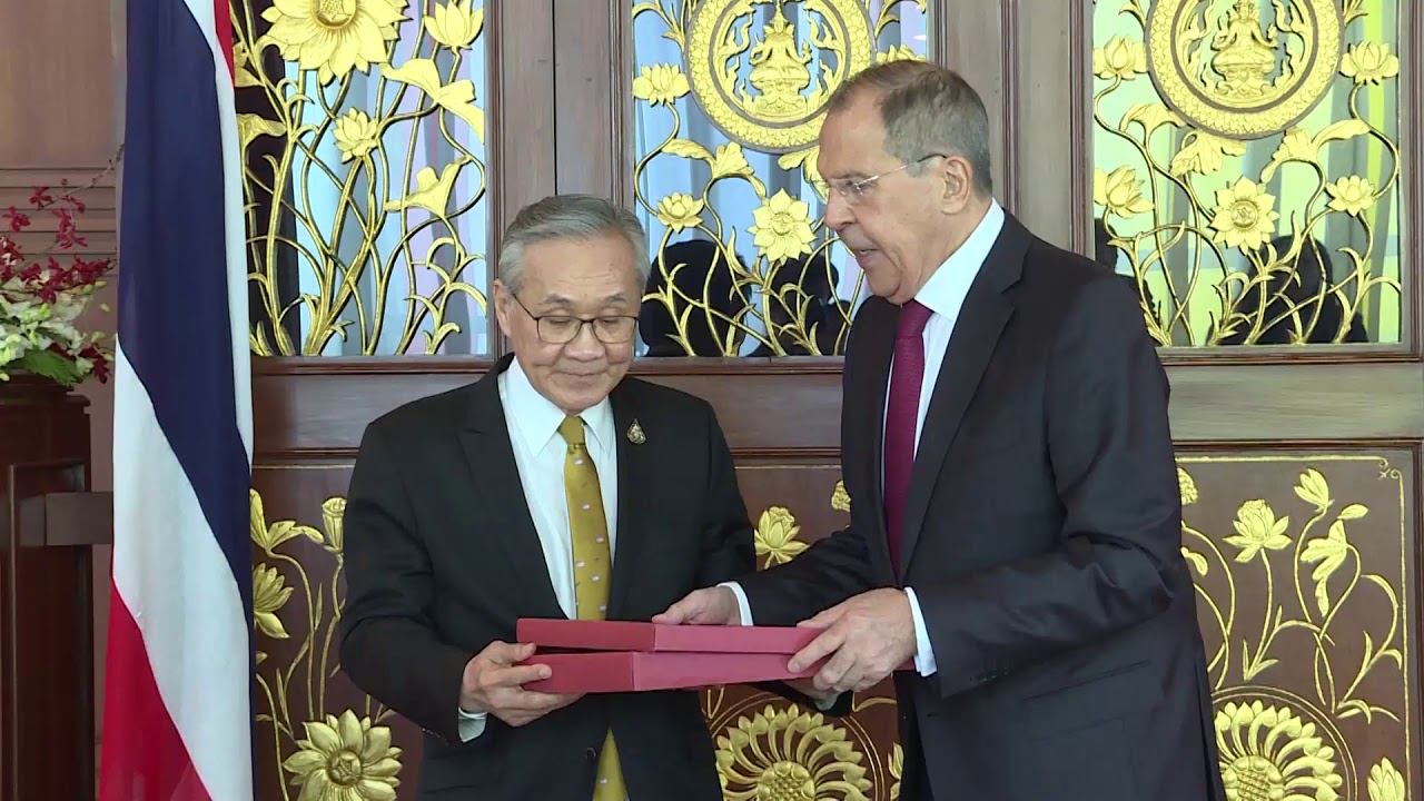 Обмен подарками между Министром иностранных дел России С.В.Лавровым и Министром иностранных дел Таиланда Д.Праматвинаем, Бангкок, 30 июля 2019 года Сайт МИД РФ www.mid.ru МИД РФ в «Твиттере» (русская версия) https://twitter.com/MID_RF МИД РФ в "VK" (русская версия) https://vk.com/mid МИД РФ в "Facebook" https://www.facebook.com/MIDRussia МИД РФ в "Instagram" https://www.instagram.com/mid.rus/ МИД РФ в "Flickr" https://www.flickr.com/photos/mfarussia/ МИД РФ в "Telegram" https://telegram.me/MID_Russia