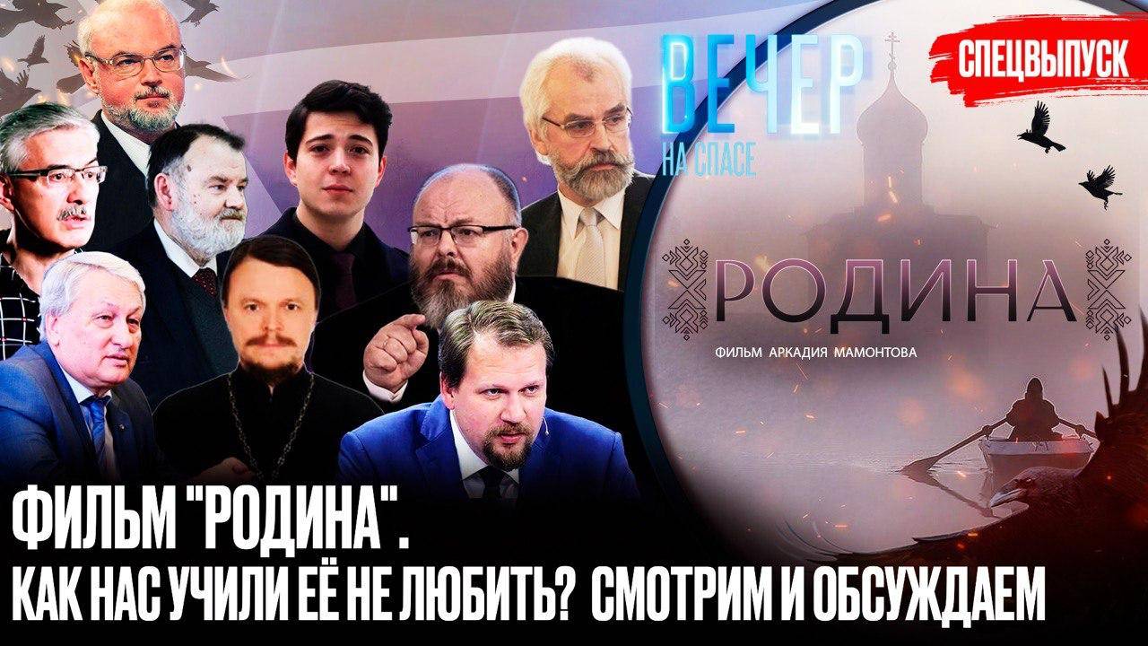 📌 В студии спаса вместе с гостями обсуждаем нашу большу премьеру фильм родина. 📌 Это большое документальное расследование о том, как последние несколько десятилетий жителей России пытались лишить чувства патриотизма, учили смеяться над тем, что свято, и любить не свою а чужую родину. Об этом мы поговорим с гостями в студии. У нас в гостях: 1. Историк спецслужб, писатель — Олег Максимович Хлобустов 2. Историк, киновед, писатель — Фёдор Ибатович Раззаков 3. Генерал-лейтенант, кандидат исторических наук — Леонид Петрович Решетников 4. Насельник Свято-Троицкой Сергиевой Лавры — иеромонах Гурий (Гусев) 5. Публицист, декан факультета медиакоммуникаций МГИК — Юрий Владимирович Кот 6. Педагог, начальник Управления по работе с казачеством МГУТУ им. К.Г. Разумовского — Илья Ипатов 7. Военный историк — Юрий Альбертович Кнутов 8. Лидер общественного движения «Сорок сороков» — Андрей Кормухин 9. Доктор филологических наук — Александр Николаевич Ужанков 10. Студент МГИМО — Антон Атрошенко 11. Студент МГИМО, волонтёр «Невской молодёжи» — Валерия Колесникова 12. Миссионер, катехизатор — Дмитрий Куделин 13. Учредитель Благотворительного фонда «Вольга», член Общественной Палаты Самарской области — Ольга Суркова