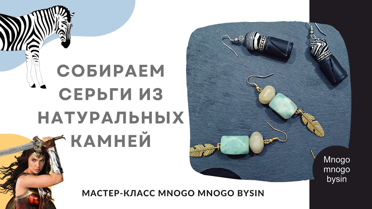 Собираем серьги из камней. Дикая амазонка и Игривая зебра. Мастер-класс MNOGO MNOGO BYSIN