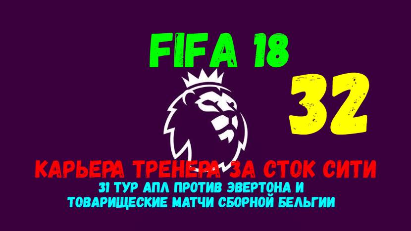FIFA 18. Карьера тренера за Сток Сити #32. Матч 30 тура АПЛ против Эвертона и игры за Бельгию.