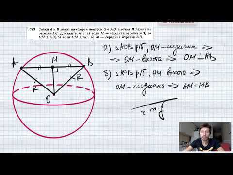 №573. Точки А и В лежат на сфере с центром O∉АВ, а точка М лежит на отрезке АВ. Докажите, что: а) если М — середина отрезка АВ, то ОМ⊥АВ; б) если ОМ⊥АВ, то М — середина отрезка АВ. TikTok - https://vm.tiktok.com/WJJwK9 Like - https://likee.com/user/@ge0metriya Мой второй канал для подготовки к ЕГЭ и ОГЭ - https://www.youtube.com/ЕвгенийСумин Инстаграм - https://www.instagram.com/EGE_OGE.math Личный инстаграм - https://www.instagram.com/ee_sumin VK - https://vk.com/evgeniysumin FB - https://www.facebook.com/EvgeniySumin