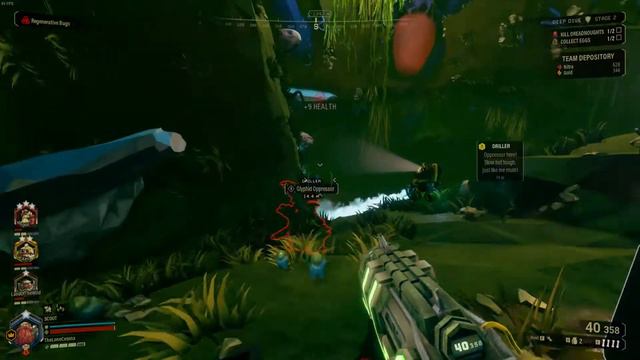 Doing a Deep Dive in Deep Rock Galactic. Deep dives consist of 3 missions together, once you finish one mission, you return to the pod and go down further to the next mission. If you make it the whole way through with your team, you will get a nice payout. Each mission you complete gives you a reward of some kind. Each mission is different with various difficulties and dangers. Important note, during these missions, its best to conserve nitra (what is used to call in ammo pods) and ammo as best you can. Once you finish a mission, what ever ammo, nitra, and health you currently have after the mission is complete, it carries on into the next mission. So conserving is definitely a must. In order to do a deep dive, you must have a promoted dwarf (have a star on your character). You only join with other promoted players. In this deep dive, there are Dreadnaughts. Things get interesting! Deep Rock Galactic is game by Coffee Stain Publishing, developed by Ghost Ship Games. You play as one of four different class dwarfs in the game. You can play solo with a drone, or with up to three other players.