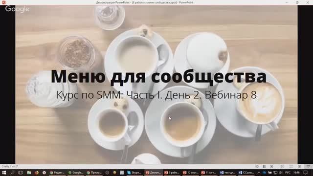 Первая часть базового курса по SMM, второй день обучения. Вебинар №8: меню для сообщества