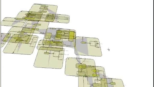 Refined 3D UML visualisation of a complex state machine diagram. From a PhD in advanced 3D UML visualisation through X3D. http://www.x3d-uml.org This state machine diagram has been refined after user task analysis, heuristic evaluation. The initial version is at http://www.youtube.com/watch?v=pghZMZJB3MU. Further refinements are planned as a result of formative evaluation. More details can be found in the MODELS'08 paper: X3D-UML: 3D UML State Machine Diagrams Paul McIntosh, Margaret Hamilton, Ron van Schyndel ACM/IEEE 11th International Conference on Model Driven Engineering Languages and Systems http://www.x3d-uml.org/Publications/2008_X3D-UML%3a_3D_UML_State_Machine_Diagrams