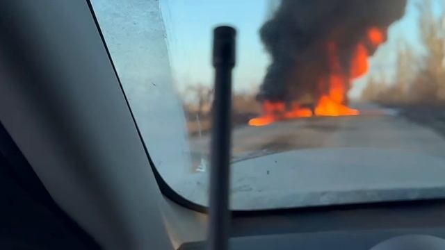 Последствия атаки дрона на грузовик на трассе Пески-Карловка