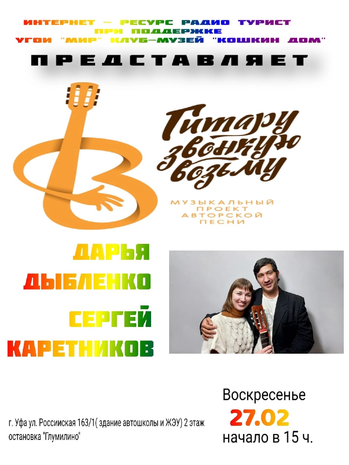 Концерт проекта "ГИТАРУ ЗВОНКУЮ ВОЗЬМУ". Дарья Дыбленко и Сергей Каретников г. Уфа 27.02.22.