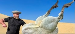 Разделка и приготовление целого страуса в восточной пустыне! Вкусное рагу