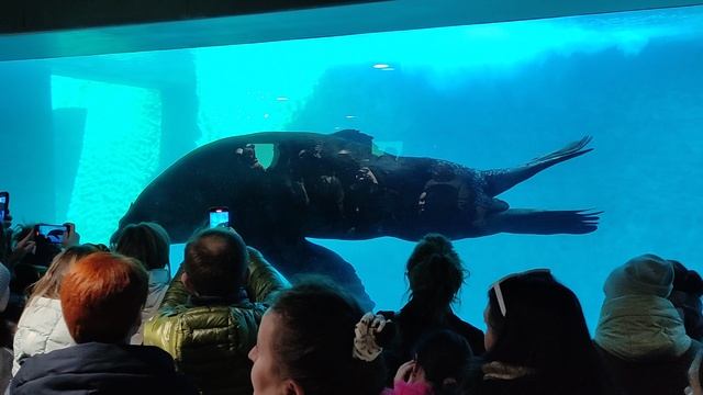 Морское чудище играет с посетителями в московском зоопарке