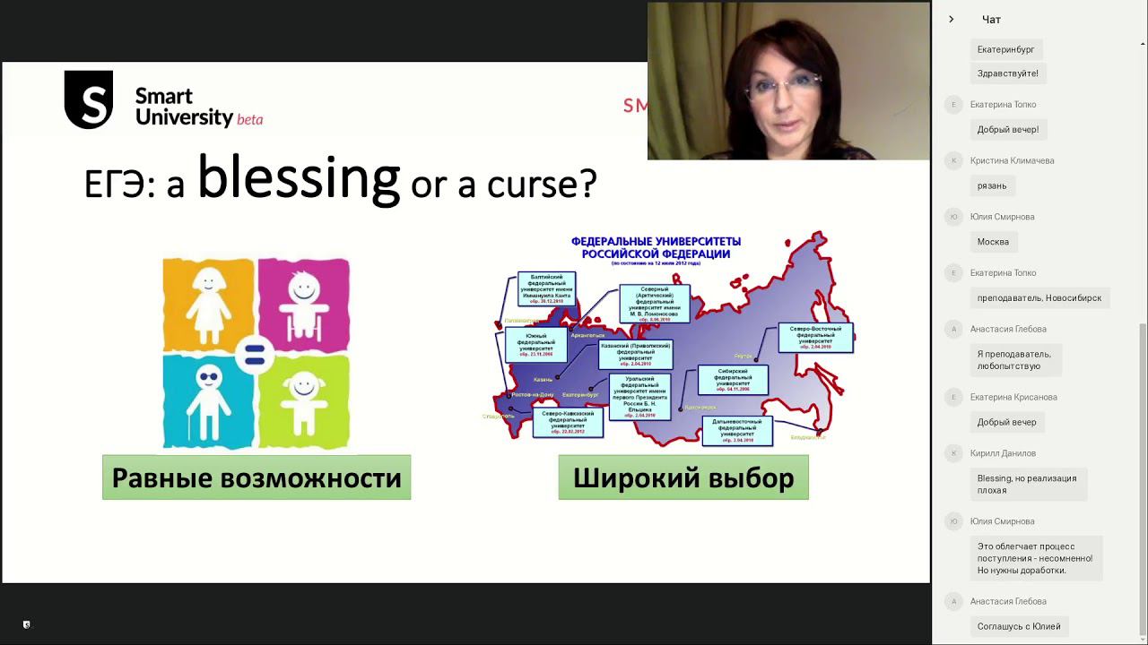 Своими знаниями об особенностях и современных требованиях Единого государственного экзамена делится кандидат педагогических наук, эксперт ЕГЭ, автор пособий к ГИА ОГЭ и ЕГЭ и соавтор интерактивного учебника Smart University Анна Почепаева. На вебинаре вы узнаете: историю ЕГЭ по английскому языку в России плюсы и минусы ЕГЭ когда ЕГЭ станет обязательным в чем проблемы с устной частью ЕГЭ как изменится формат экзамена в ближайшее время как теряют баллы самые распространенные ошибки и как их избежать противоречия в требованиях к к уровню владения языком как на самом деле проверяют работы выпускников как правильно готовиться к ЕГЭ по английскому языку Подробнее об онлайн-школе английского языка Smart University https://smart-university.ru Версия для смартфонов и планшетов: iOS: https://itunes.apple.com/app/id1269095540?mt=8 или Android: https://play.google.com/store/apps/details?id=smarteducation.smartu Записаться на бесплатный урок в Smart University можно по ссылке https://smart-university.ru О том как проходит вводный урок и зачем он нужен читайте в нашем блоге http://blog.smart-university.ru/kak-proxodit-vvodnyj-urok-i-zachem-on-nuzhen/ Все, что нужно знать про ЕГЭ по английскому языку можно узнать в этой статье http://blog.smart-university.ru/chto-nuzhno-znat-o-ege-po-anglijskomu-yazyku/ Еще вебинары https://smart-university.ru/webinar/landingafisha #МТС #ЕГЭ #SmartUniversity