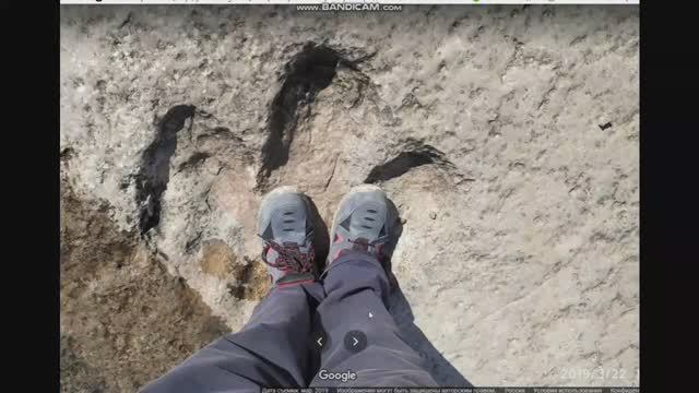 В этом месте в древности было огромное количество динозавров. Следы ящеров тут везде.
