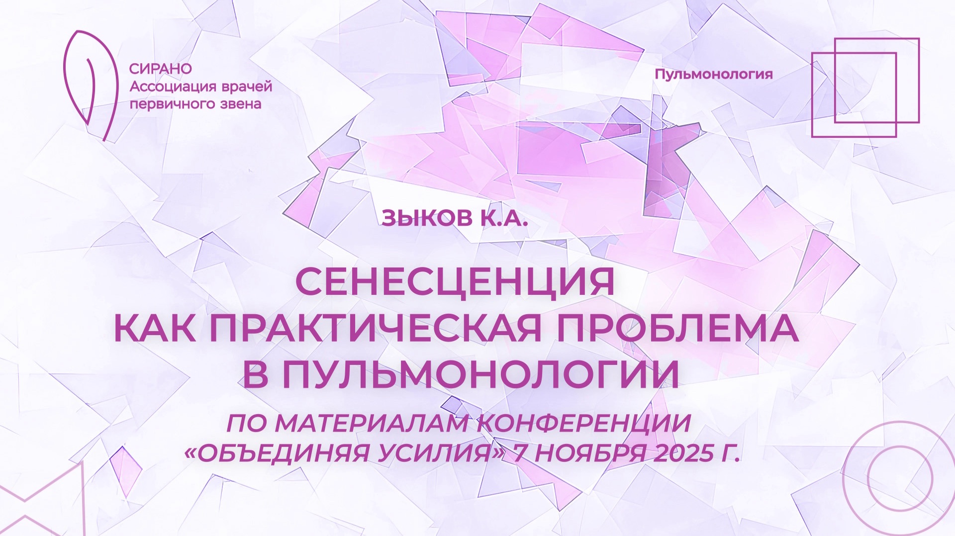 21.02.26 16:30 Сенесценция как практическая проблема в пульмонологии