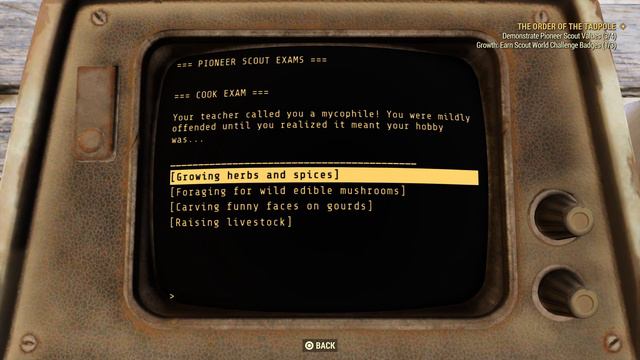 Fallout 76 - Tadpole Final Exam: Cook (at Camp Lewis)
