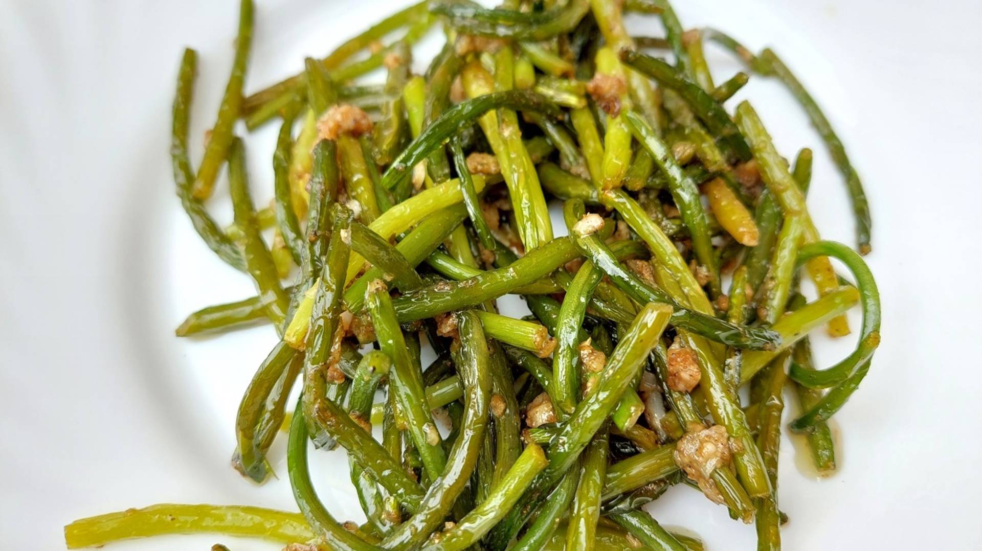 Стрелки чеснока – это цветоносы чеснока. В период удаления с основного растения стрелки очень нежные и ароматные. При приготовлении убрать с цветоноса нераскрывшийся бутон и при необходимости грубую часть стрелки. Нарезать их желаемой длинны и жарить на растительном масле до изменения в цвете и мягкости. Заправить стрелы готовой приправой для корейских салатов, ароматизировать чесноком, подкислить столовым уксусом. Соль, если необходимо, отрегулировать соевым соусом. ИНГРЕДИЕНТЫ: • Стрелы чеснока – 1 пучок • Масло растительное – 3 стл • Приправа для корейской моркови – 1 стл • Чеснок – 4 зуб • Уксус столовый – 1 стл При приготовлении салата рекомендую ориентироваться на предоставленную видеоинформацию, свой вкус и предпочтения. ПРИЯТНОГО АППЕТИТА!!! Всем мира, бодрости духа и благополучия!