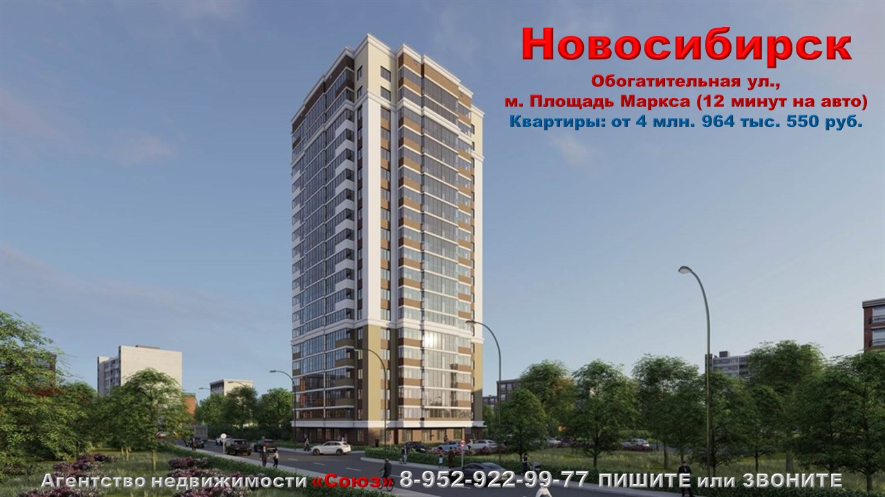 Каталог новостроек Новосибирска - https://nedvigimoct.allrealty.pro/?regionId=54#catalog Агентство недвижимости «СОЮЗ» Покупайте: квартиру в Новосибирске. Обогатительная ул., м. Площадь Маркса (12 минут на авто) Агент по новостройкам: 89529229977 (WhatsApp) Цены на квартиры точно такие же как и у застройщика. Квартиры продаются БЕЗ РИЭЛТОРСКОЙ КОМИССИИ !!!. Ст. квартиры: от 4 млн. 964 тыс. 550 руб. Ежемесячный платеж: 23 782 руб. при ставке 6% Площадь общая: 43,08 м2 - 64,01 м2 Срок сдачи: сдан Срок выдачи ключей: 1 квартал 2024 Договор: ПДКП Тип дома: кирпично-монолитный Тип отделки: подготовка под чистовую отделку Парковка: подземная Потолки: 3 м. Преимущества:Транспортная доступность. Развитая инфраструктура. Благоустроенная территория. Отапливаемый подземный паркинг. Система безопасности и контроль доступа. Спортивные и детские площадки. Описание комплекса: Жилой дом расположен в экологически чистом районе Новосибирска. Преимущества местности очевидны: река Обь, пляж, парк культуры и отдыха "Бугринская роща", где можно отдохнуть от ритма мегаполиса наслаждаясь тишиной и свежим воздухом, спортивный комплекс с плавательным бассейном "Бугринский". Супермаркеты, гипермаркет "МЕГА" в нескольких минутах ходьбы от жилого комплекса, рядом расположены школьные и дошкольные заведения, парки, торговые центры, спортивные секции, медицинские учреждения, развлекательные комплексы и многое другое. Магазины формата «у дома» уже работают в первом сданном доме жилого комплекса. Удобные и современные планировки квартир. Три лифта: один грузовой на 1000 кг и два пассажирских на 400 кг. Современная система безопасности и контроль доступа. Комната для консьержа будет оборудована системой видеонаблюдения. Детская игровая площадка, спортивная площадка, освещение, зеленые насаждения. Высокое качество строительства и материалов (монолитный каркас, кирпич), остекление балконов в пол. Для удобства и безопасности вашего автомобиля на -1 этаже спроектирована автостоянка. Лифтовое сообщение с жилыми этажами обеспечит комфорт пользования подземным паркингом. Это уголок спокойствия и безмятежности, идеальное сочетание современного комфорта и близости к родной природе.