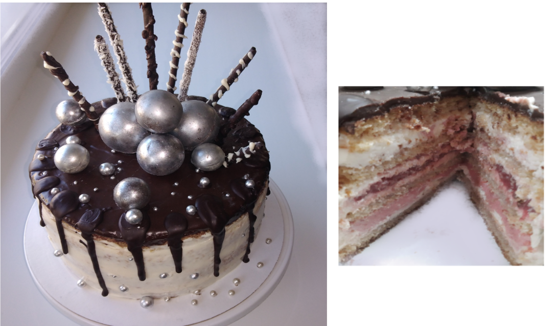 Диаметр 20 см . 4 коржа,высота 12 см., вес 2700 *БИСКВИТ: https://rutube.ru/video/4aa0e1b441188c72e34f6774441c8971/ - яйцо 7 шт -сахар 210гр -мука 210гр - молоко 70мл -масло растительное 70 мл - сода 3гр - соль * СУФЛЕ КЛУБНИЧНОЕ: готовить по 1/2 от рецепта на один слой - клубника пюре 150гр - сазар 55гр - сливки 33% 170 мл - сахарная пудра 35 гр - йогурт клубничный 210 мл - желатин 160 блюм 13 гр( для полусфер взять желатина 7 гр, для заливки -6гр) - вода 78 мл * СУФЛЕ ЙОГУРТНОЕ: - йогурт сливочный 250 мл - сахар 50 гр - шоколад белый 30 гр - сливки 33% 250 мл - желатин 13 гр - вода 78 мл * КОНФИ: https://rutube.ru/video/39801076545d5ca4cbd9d5db4f354304/ - клубника пюре 250гр - сахар 50гр - крахмал 10гр * КРЕМ В ПРОСЛОЙКУ: https://rutube.ru/video/d816bc72d63898ec5ad1383c8d5088a4/ - сыр творожный 400 гр - сахарная пудра 50 гр - яйцо 2 шт - мука 40 гр - крахмал 12 гр - молоко 300мл - сахар 50гр - масло сливочное 40гр * ГЛАЗУРЬДЛЯ ПОКРЫТИЯ: - шоколад 80гр - молоко сгущенное 110гр -* ГЛАЗУРЬ НА ПОДТЕКИ: - шоколад 80гр - масло растительное 20 мл * ШАРЫ: - шоколад 250 гр