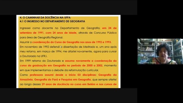 PARTE 1 MEMORIAL para professora Titular da UFPA: Apresentação da Profa. Maria Goretti Tavares Apresentação do Memorial de Atividades Acadêmicas para Professora Titular da UFPA, da profa. Maria Goretti da Costa Tavares, realizada no dia 24 de setembro de 2020 . BANCA EXAMINADORA : Prof. Dr. Saint-Clair Cordeiro da Trindade Junior - Presidente - Professor Titular (UFPA) Prof. Dr. José Borzacchiello da Silva - Professor Titular (UFCE) Prof. Dr. Jadson Luis Rebelo Porto - Professor Titular (UNIFAP) Prof. Dra. Marta de Azevedo Irving - Professora Titular (UFRJ) Prof. Dr. José Júlio Ferreira Lima Professor Titular (UFPA) Profa. Dra. Leila Christina Duarte Dias Professora Titular(UFSC)