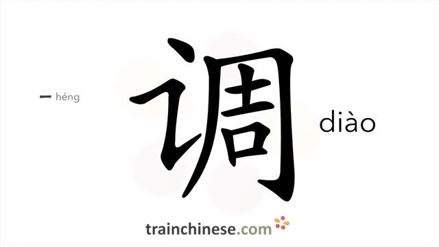 调 (diào) transfer; shift; move; investigate; tune, accent